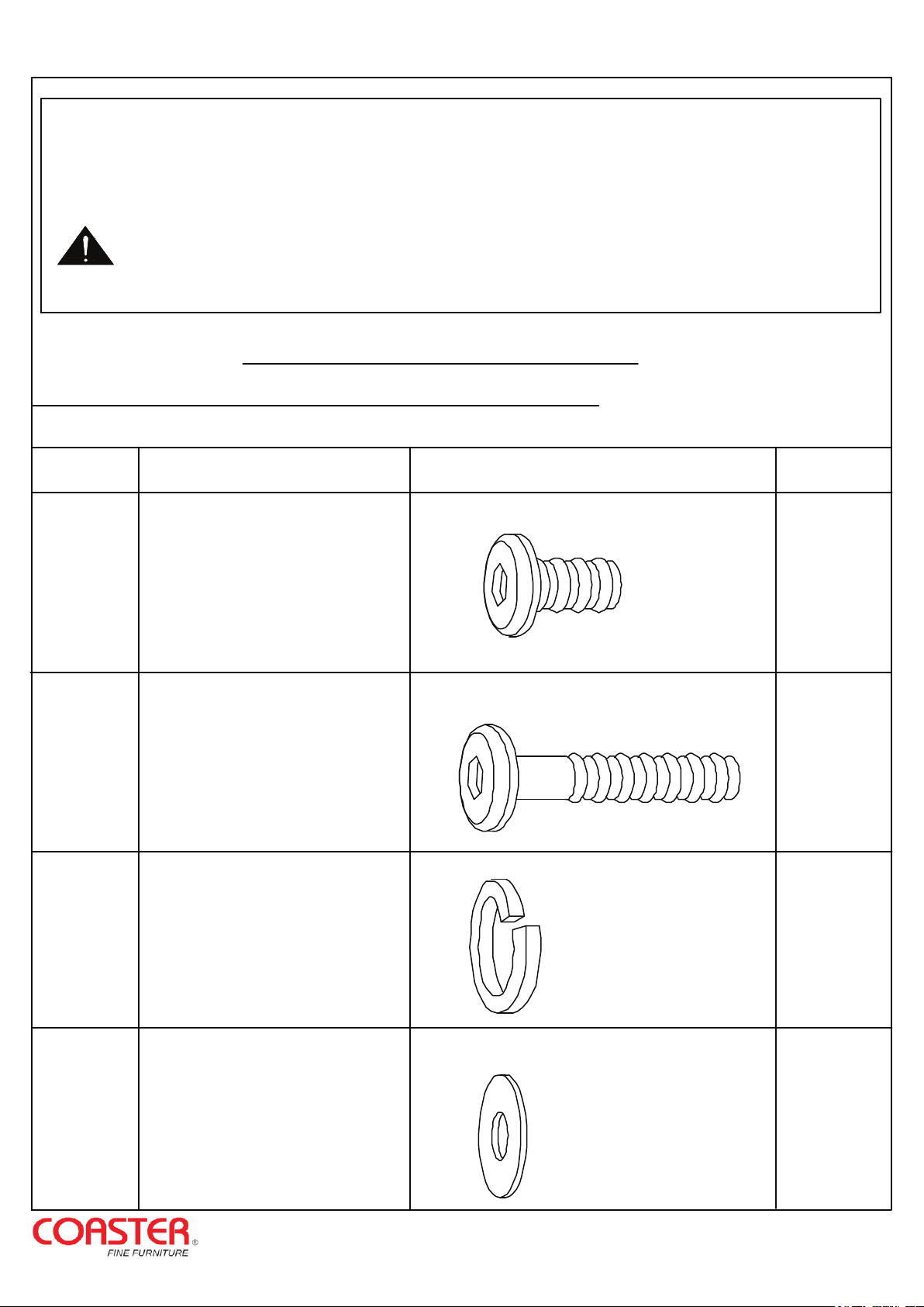 2. Please check to see that all hardware and parts are present prior to start of assembly.