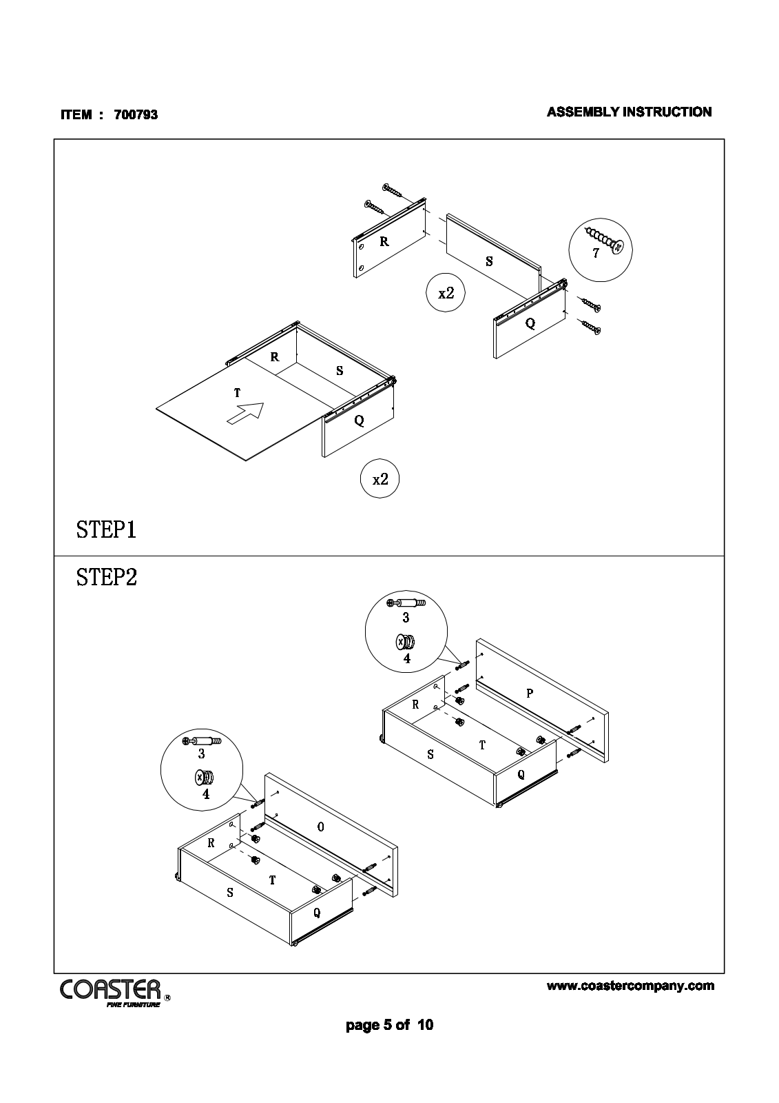 Coaster 700793 Assembly Guide