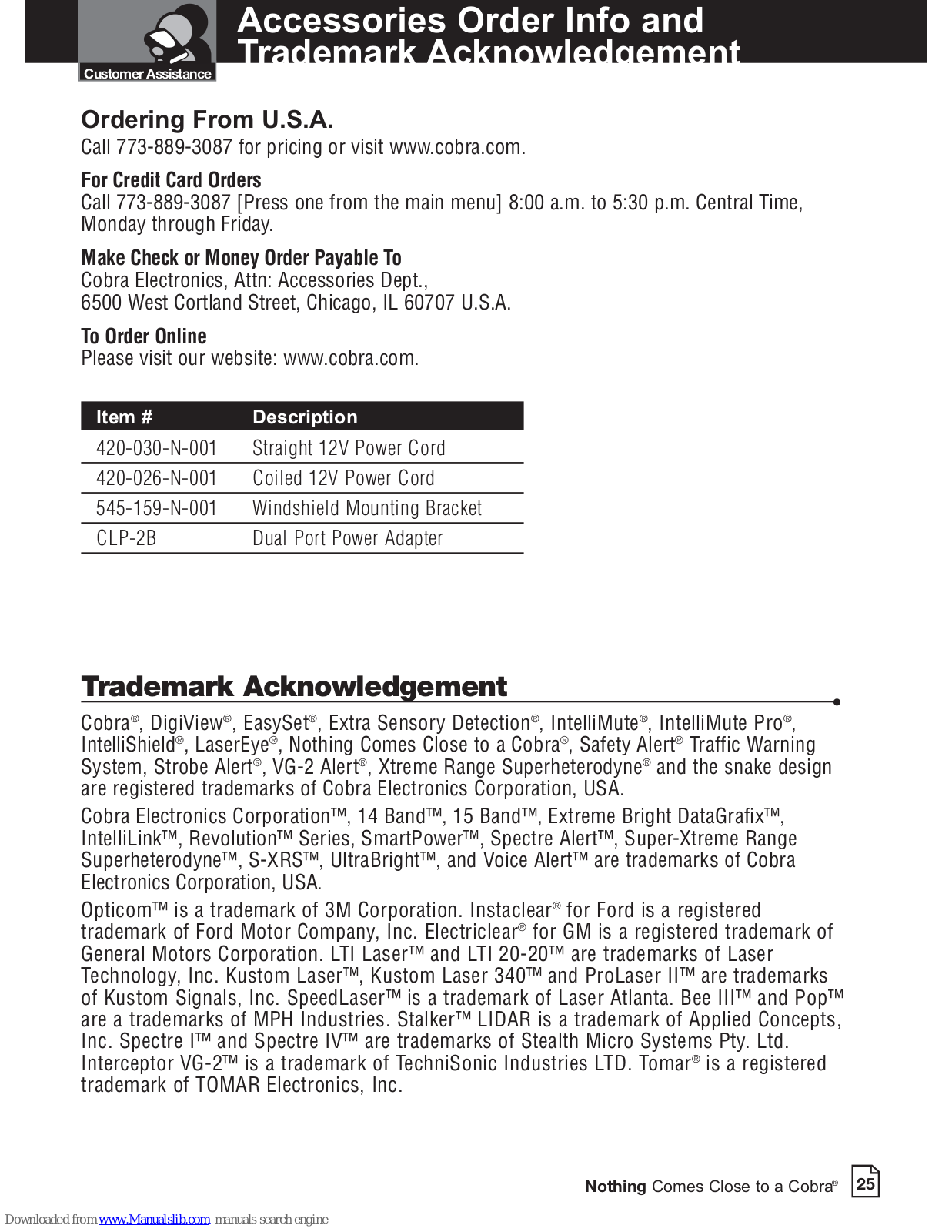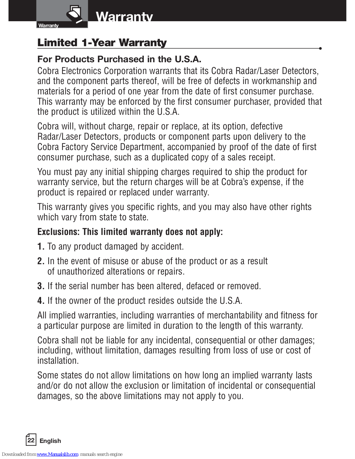 Cobra Operating Instructions Manual