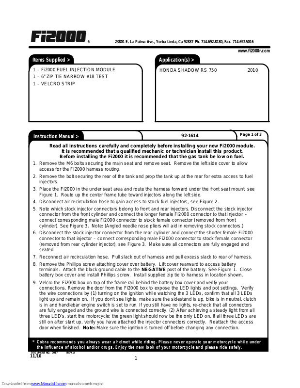 Read all instructions carefully and completely before installing your new Fi2000 module.
