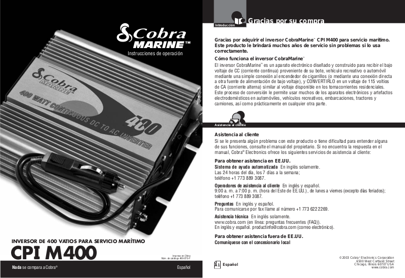 Electronics Corporation garantiza que el inversor CobraMarine™y sus componentes