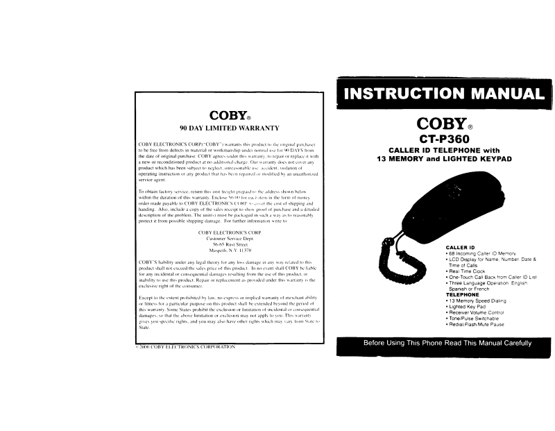 Coby CT-P360 User Manual