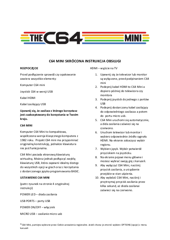 C64 MINI SKRÓCONA INSTRUKCJA OBSŁUGI