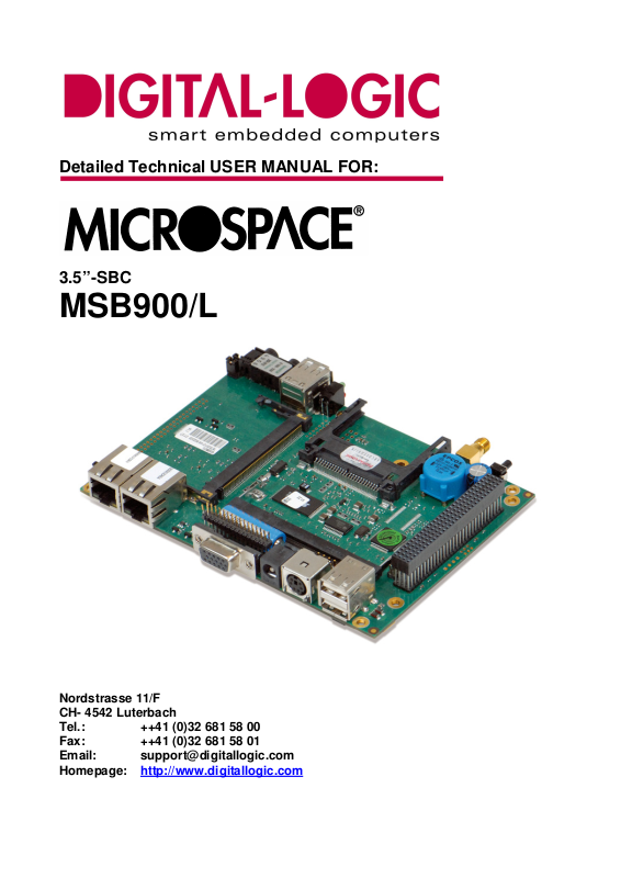 DIGITAL-LOGIC AG MSB900/L Detailed Technical Manual V1.0