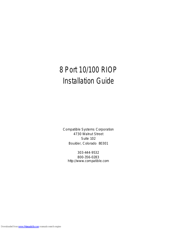 This section of the manual will help you install the 8 Port 10/100 RIOP to connect up to eight