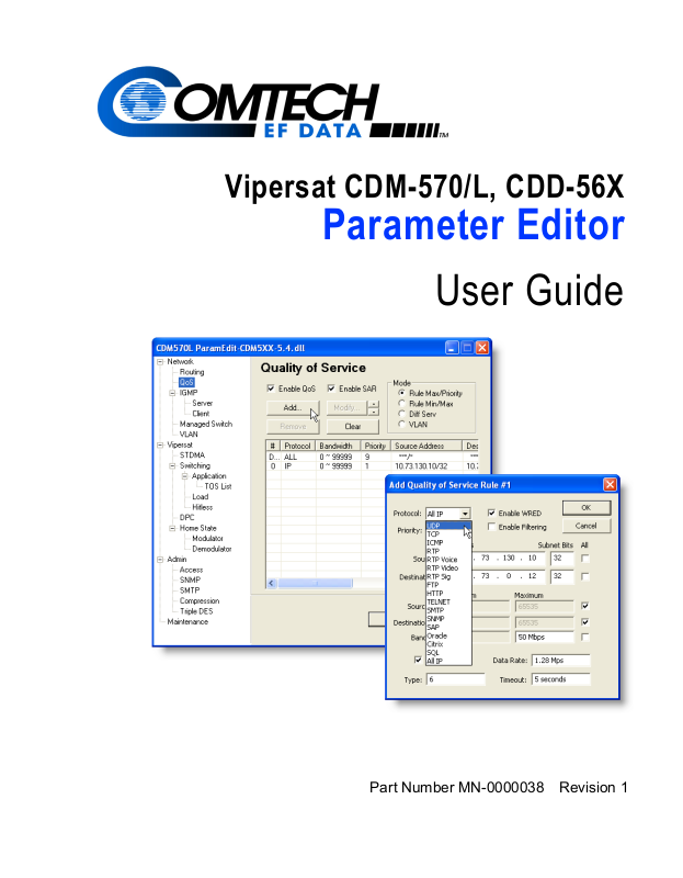This user guide documents the Parameter Editor as it applies to the CDM-570/