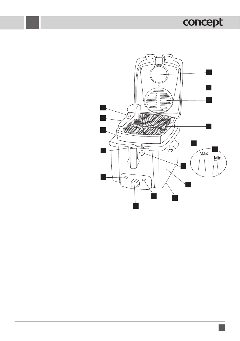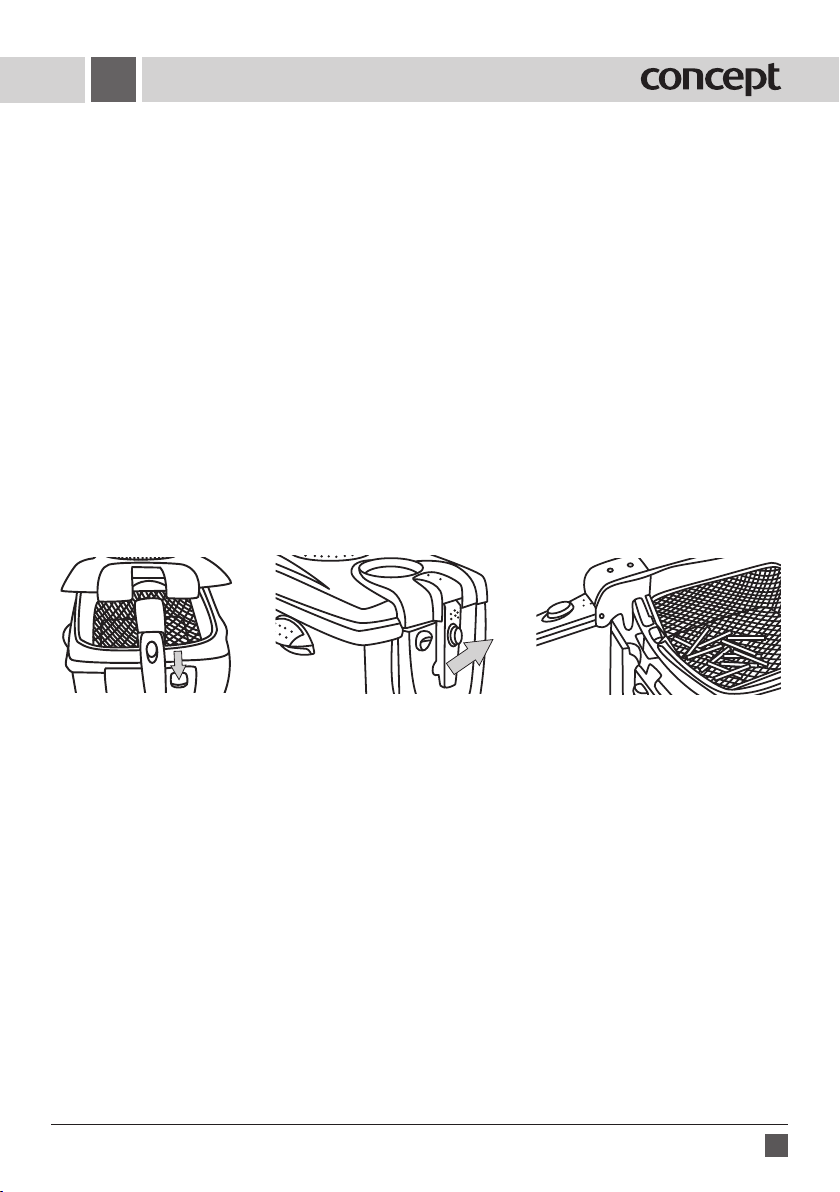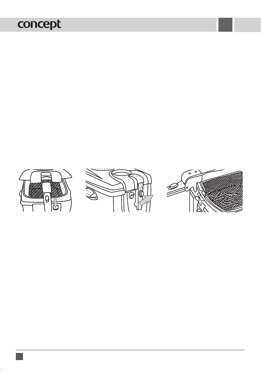 • Předtím, než naplníte fritézu olejem nebo tukem a připojíte k elektrické síti, se přesvědčte, zda všechny díly jsou zcela
