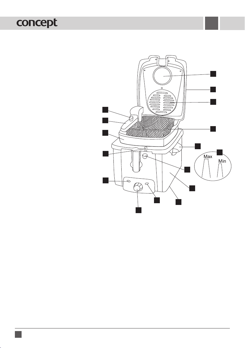 mezi ryskami minima a maxima. Před každým novým fritováním se přesvědčte, zda je ve fritéze dostatečné množství