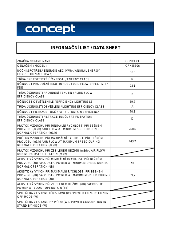 TŘÍDA ÚČINNOSTI FILTRACE TUKŮ / FAT FILTRATION