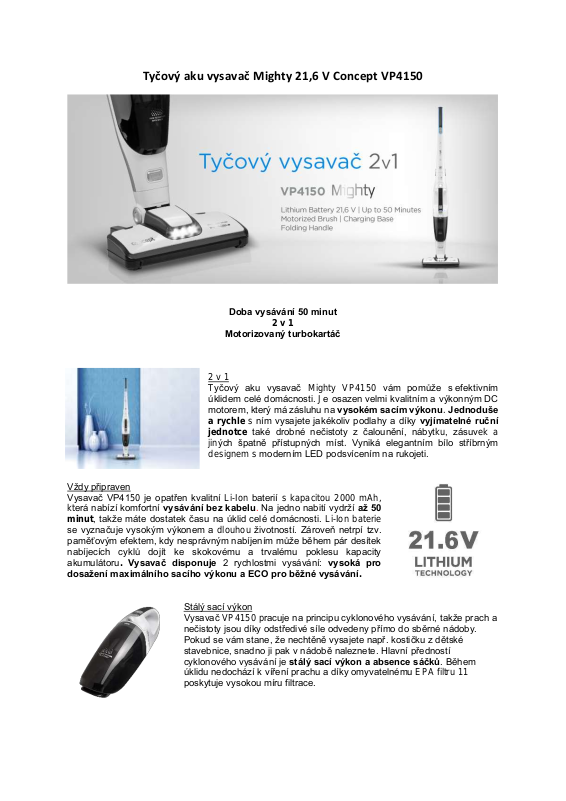 Vysavač VP4150 je opravdu všestranný pomocník. Disponuje odnímatelnou
