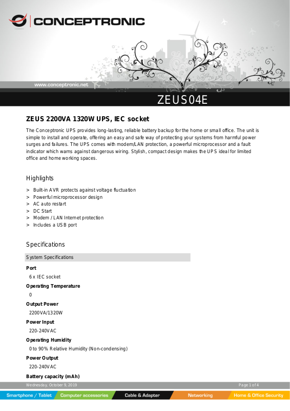 The Conceptronic UPS provides long-lasting, reliable battery backup for the home or small office. The unit is