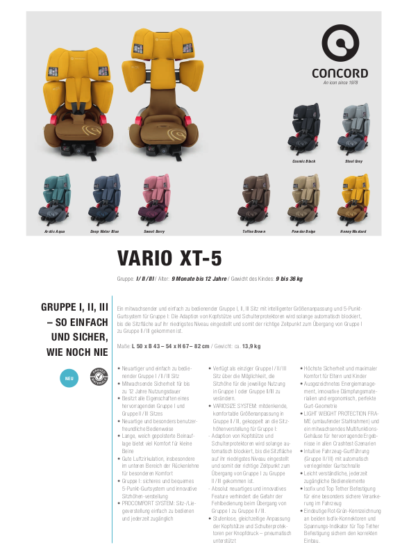 • Neuartiger und einfach zu bedienender Gr uppe I / II / III Sitz