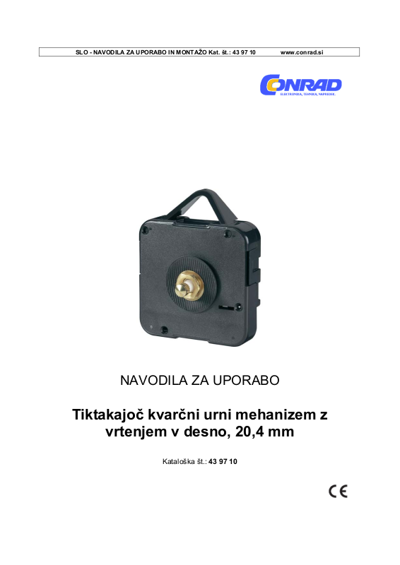 Pokvarjen izdelek pošljete na naslov: Conrad Electronic d.o.o. k.d., Ljubljanska cesta 66,