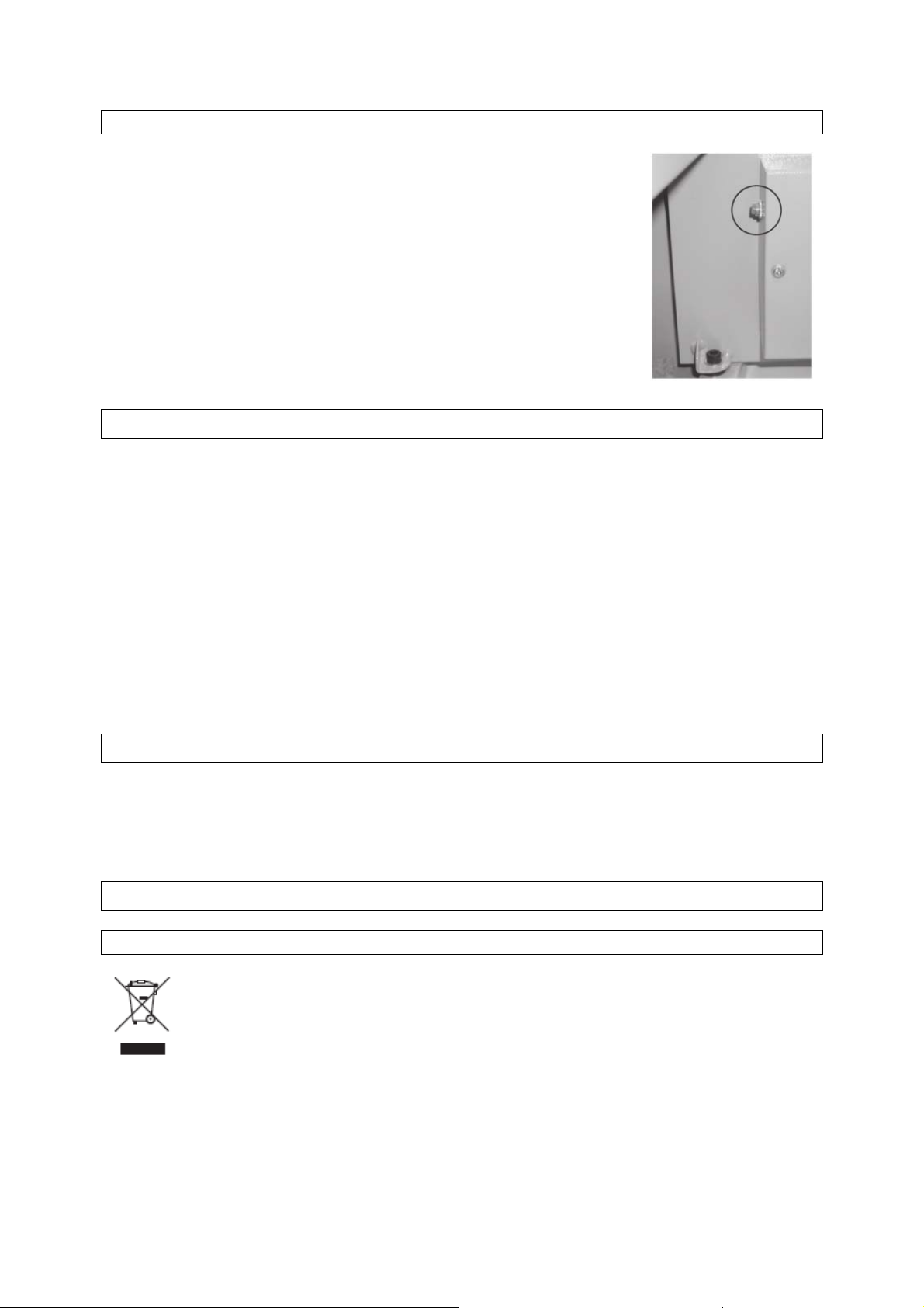 • Na zadnji strani vrat trezorja (v bližini osi na notranji strani vrat) je