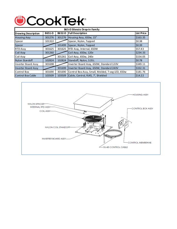 Coil Assy 301260 Coil Assy, 650w, 120v $234.33