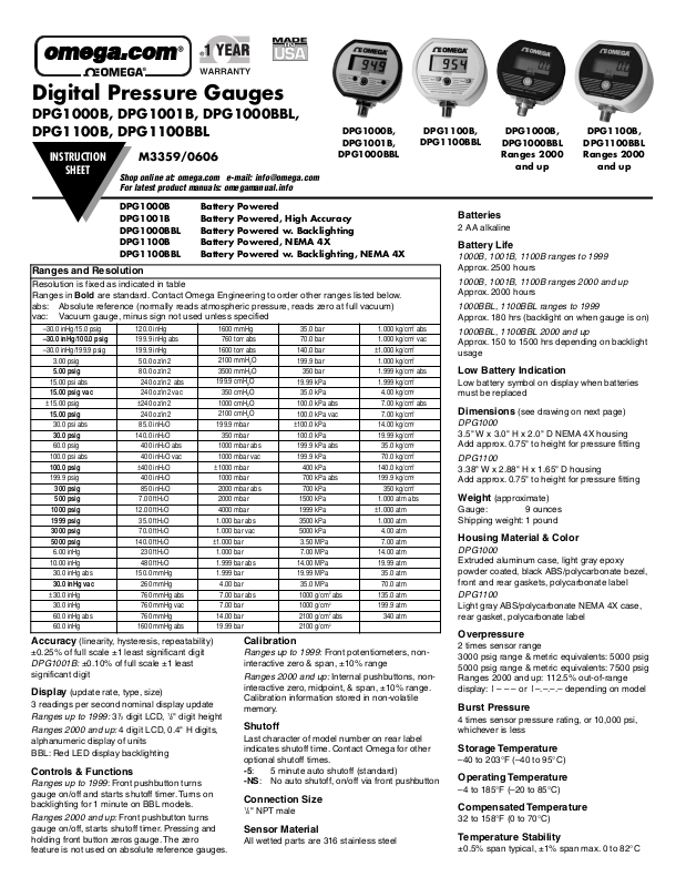 Mexico: En Espan˜ol: (001) 203-359-7803 e-mail:espanol@omega.com