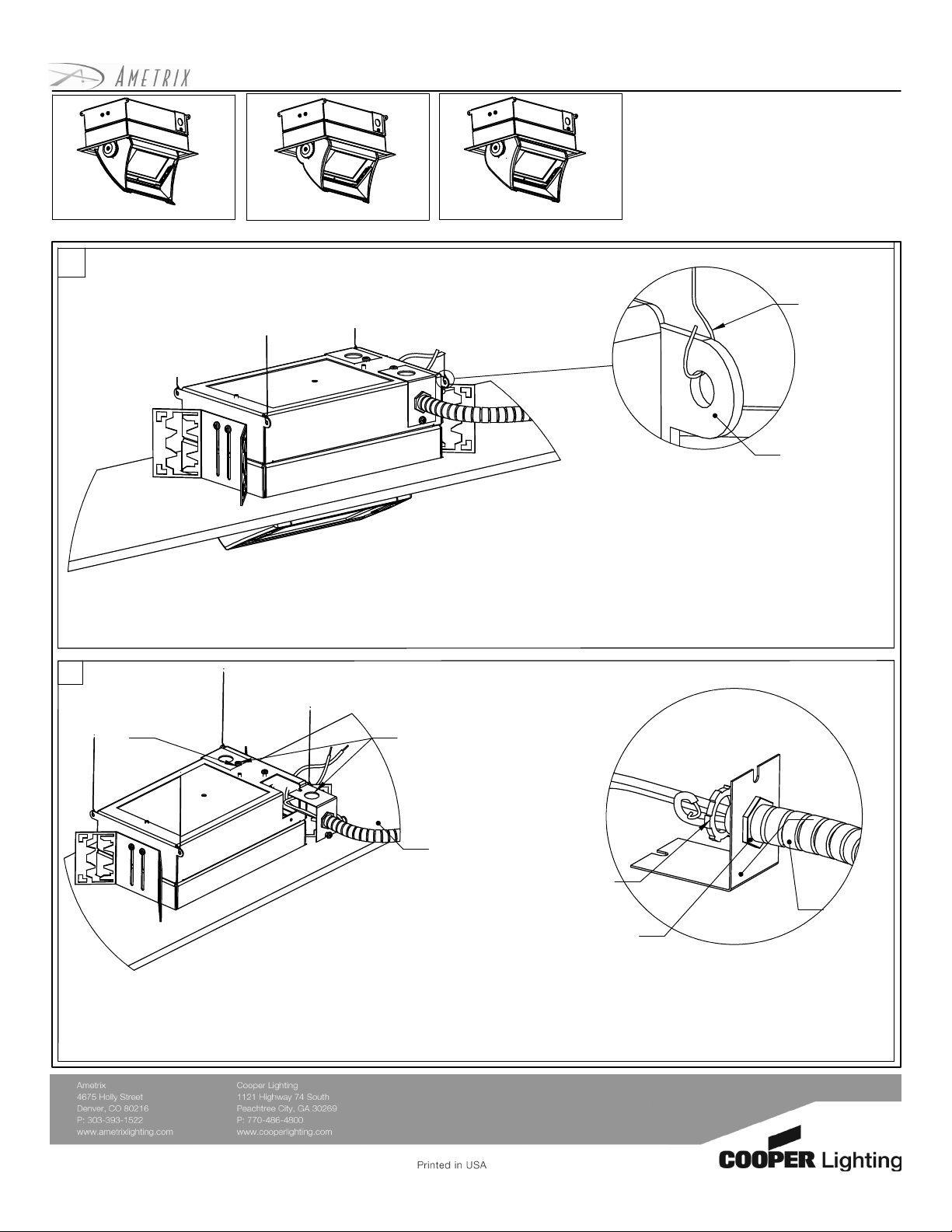 After securing fixture housing to ceiling structure using provided brackets, reinforce fixture using safety wire(by others).