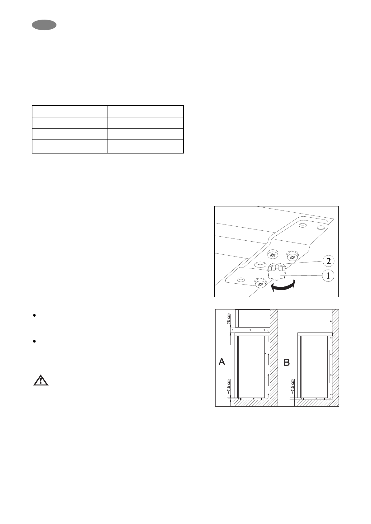 If the ambient temperature goes beyond the upper data this means longer operating time of the compressor, breakdown in the automatic defrosting increasing temperature in the cooling compartment or increasing energy consumption.
