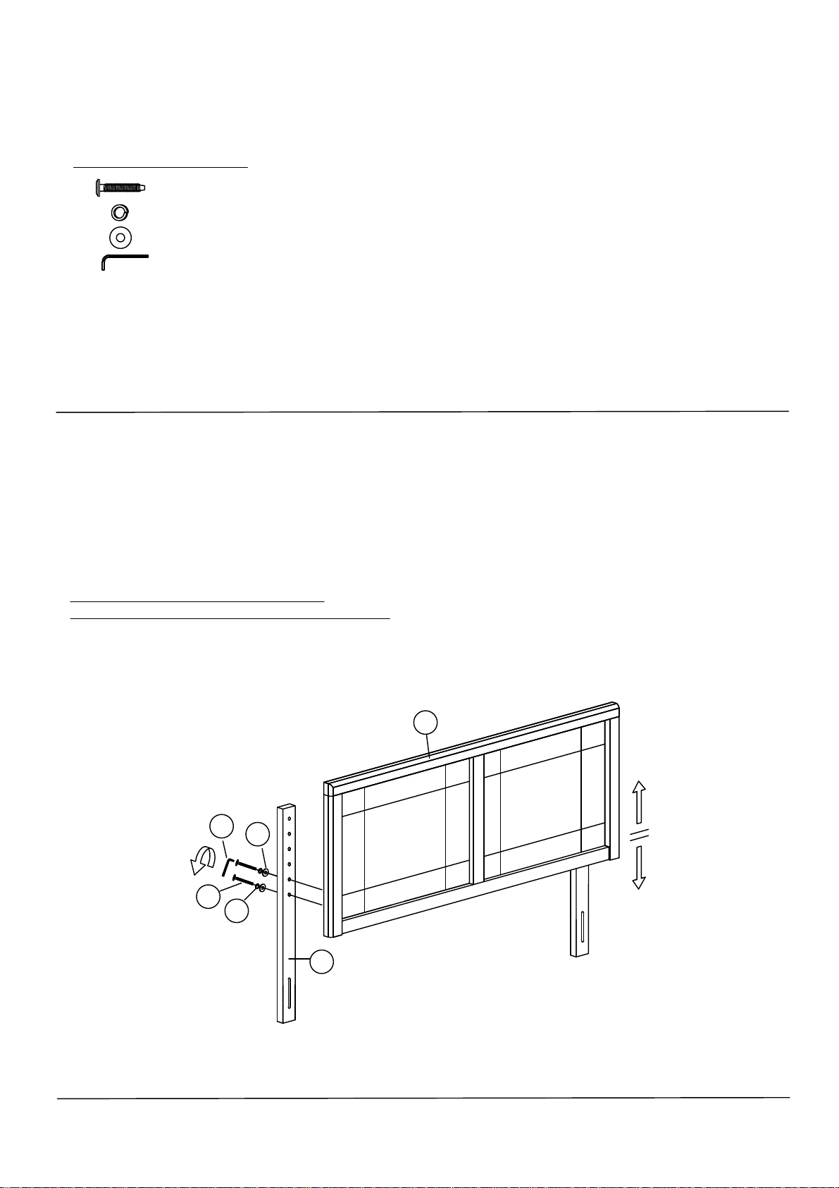 2.2 Secure the headboard to the bed frame by using 3x JCBC Bolt [1] and 3x M6 Spring Washer [2] and