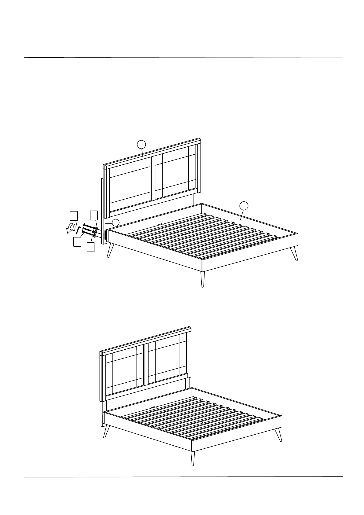 2.1 Line up the bed frame board's pre-drilled holes to match those of the headboard.