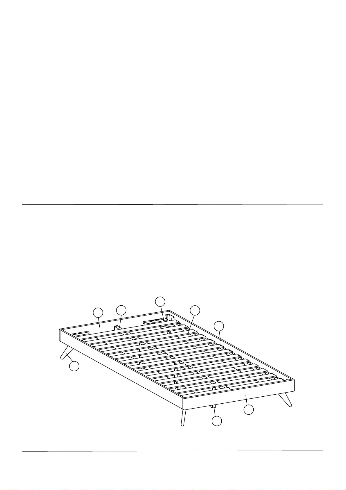 2. Owing to the size and weight of the bed, we recommend that it is assembled by two adults, on a carpeted or