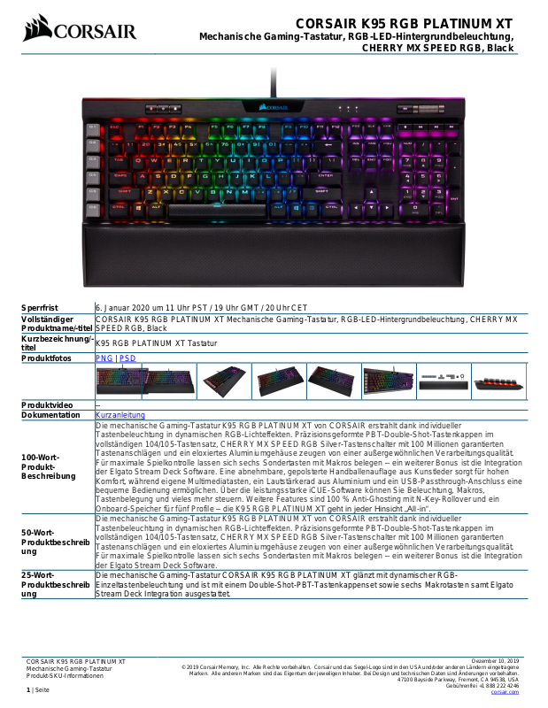 © 2019 Corsair Memory, Inc. Alle Rechte vorbehalten. Corsair und das Segel-Logo sind in den USA und/oder anderen Ländern eingetragene