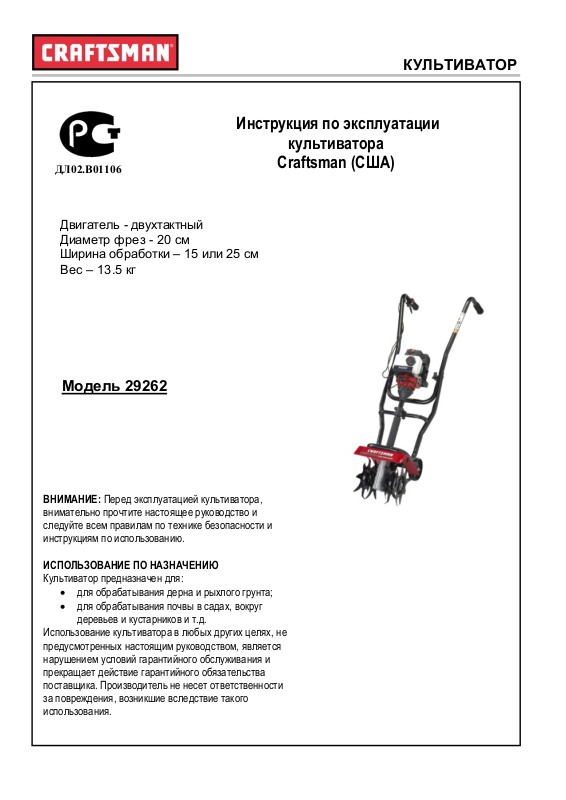 ВНИМАНИЕ: Перед эксплуатацией культиватора,