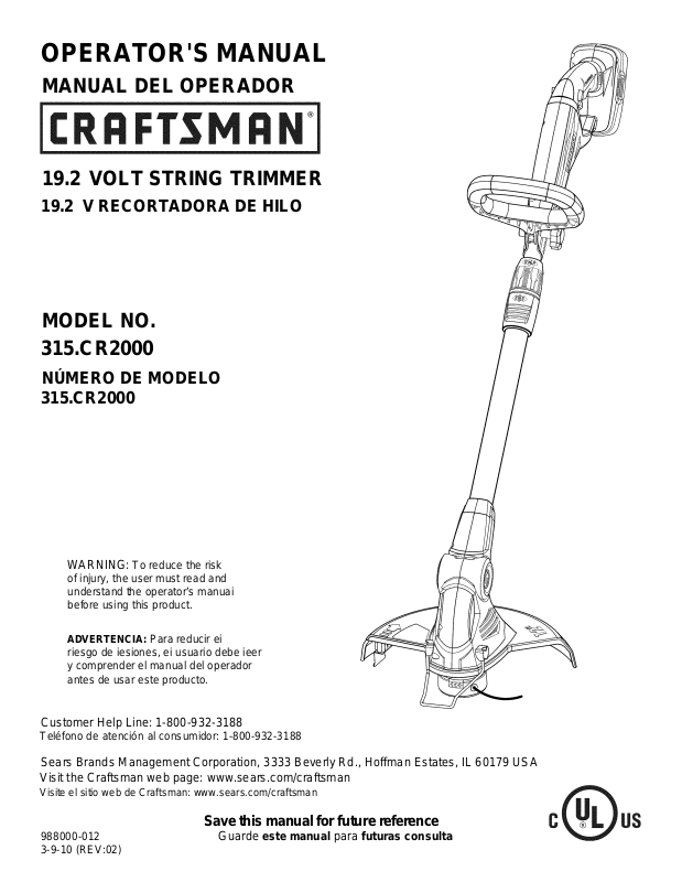 Esta garantía no cubre el hilo de la recortadora ni el carrete. Éstas son piezas consumibles que se pueden desgastar con el uso