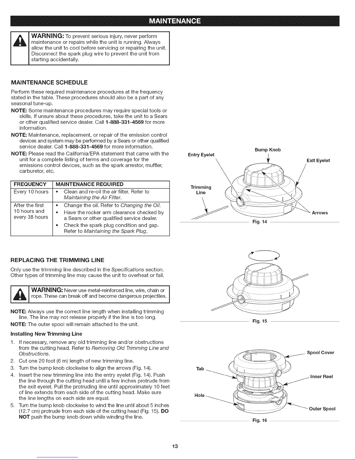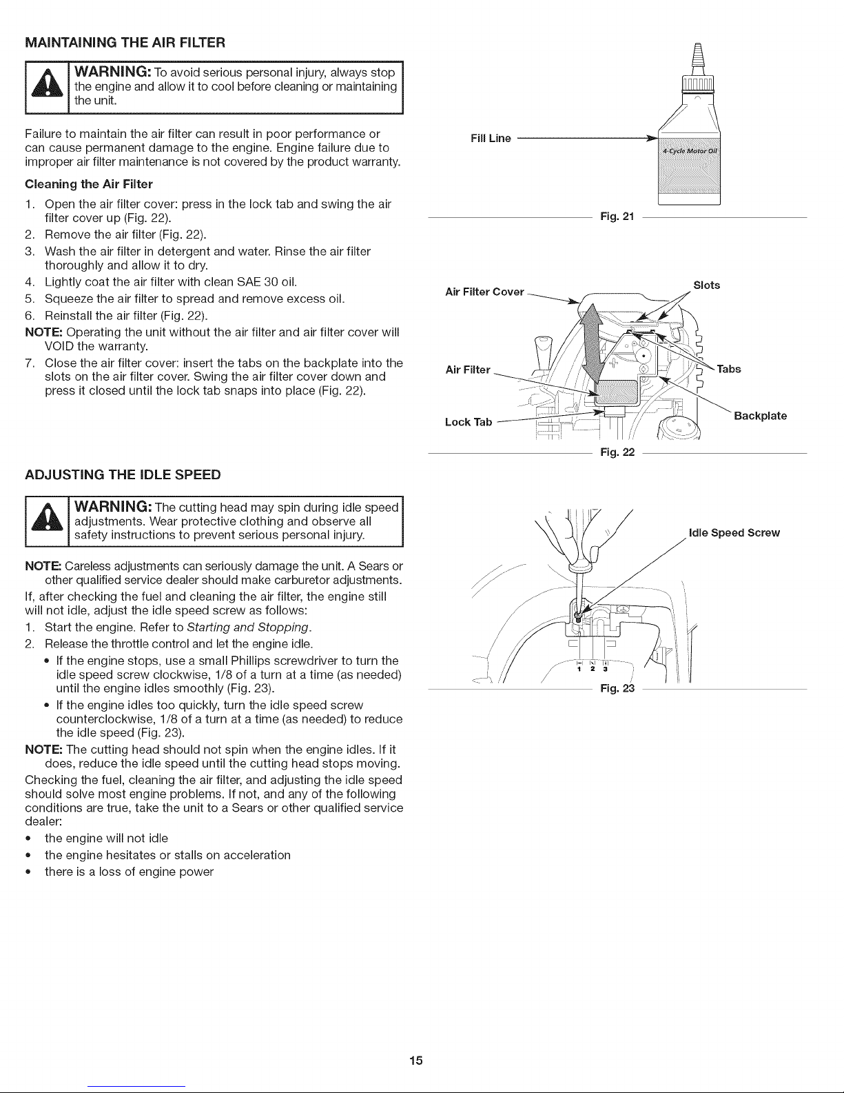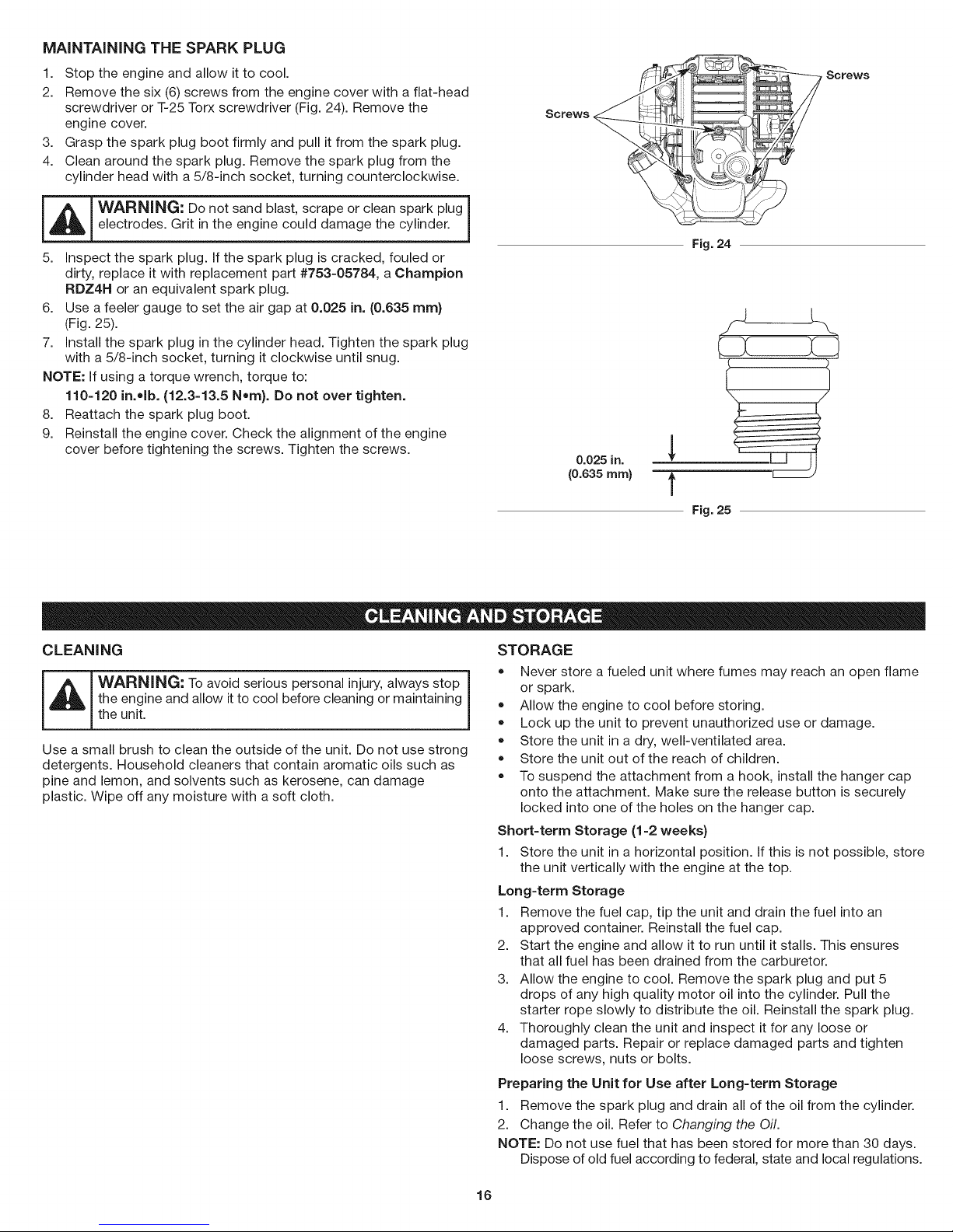 starter rope slowly to distribute the oil. Reinstall the spark plug.