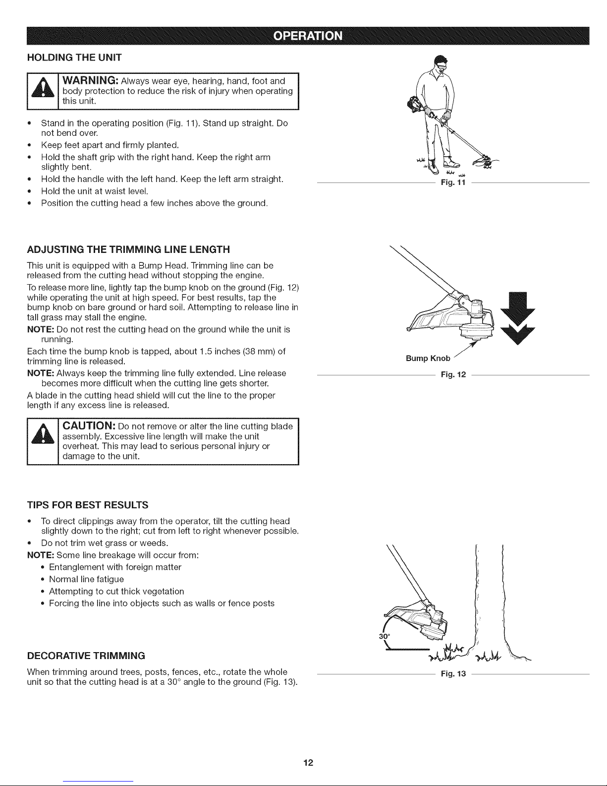 Stop the unit, push the bump knob and pull the line until 4 inches