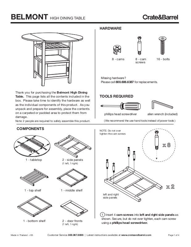 Customer Service 800.967.6696 | Latest instructions available at www.crateandbarrel.com