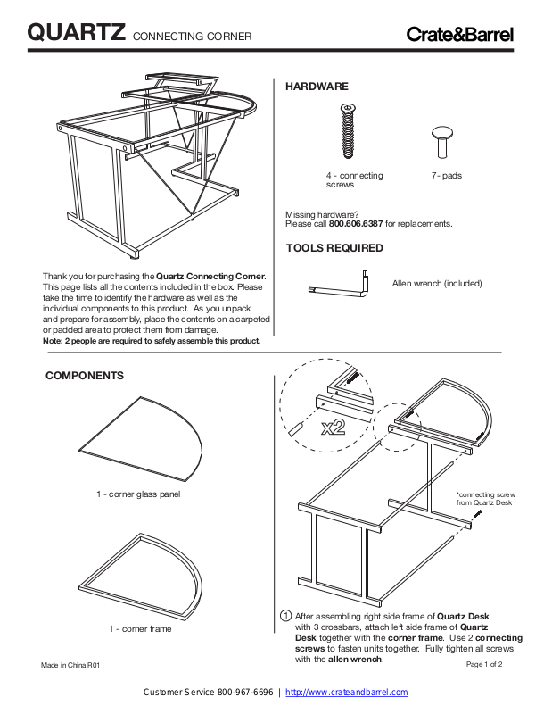 Customer Service 800-967-6696 | http://www.crateandbarrel.com