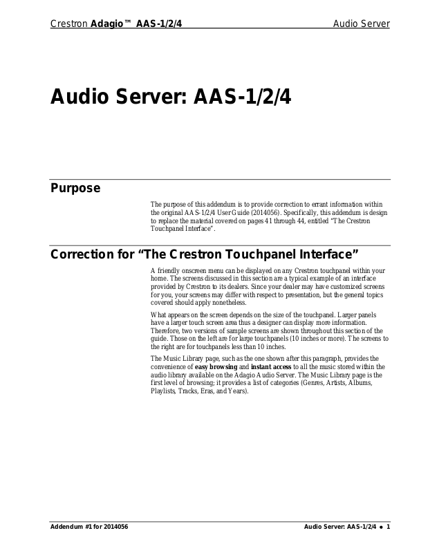 4 • Audio Server: AAS-1/2/4 Addendum #1 for 2014056