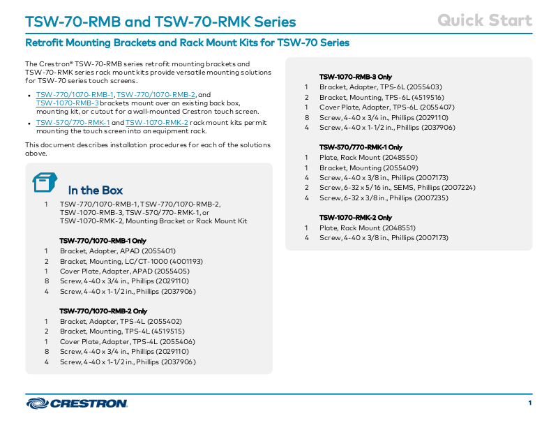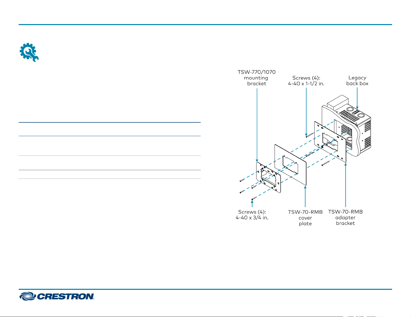 The Crestron® TSW-70-RMB series retrofit mounting brackets and