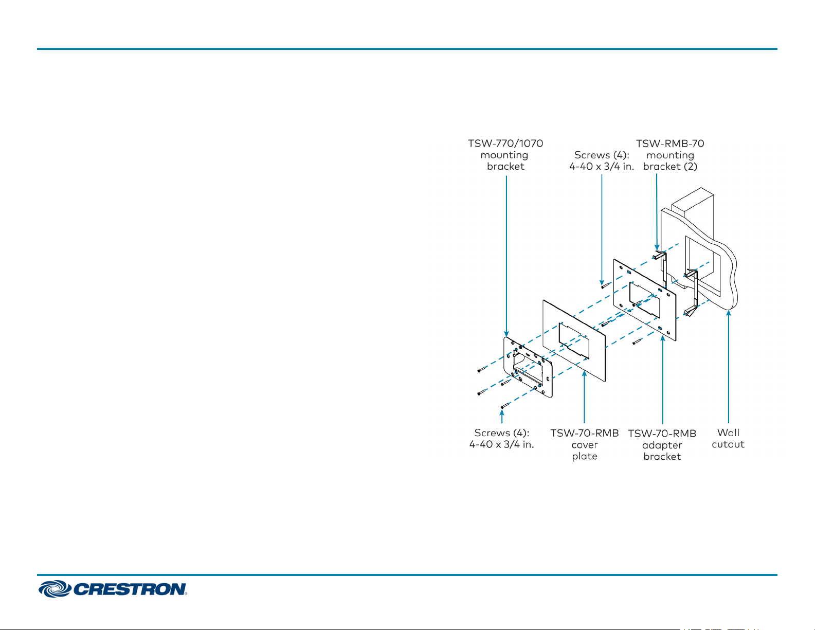 screen) and the TSW-70-RMB cover plate to the adapter bracket using