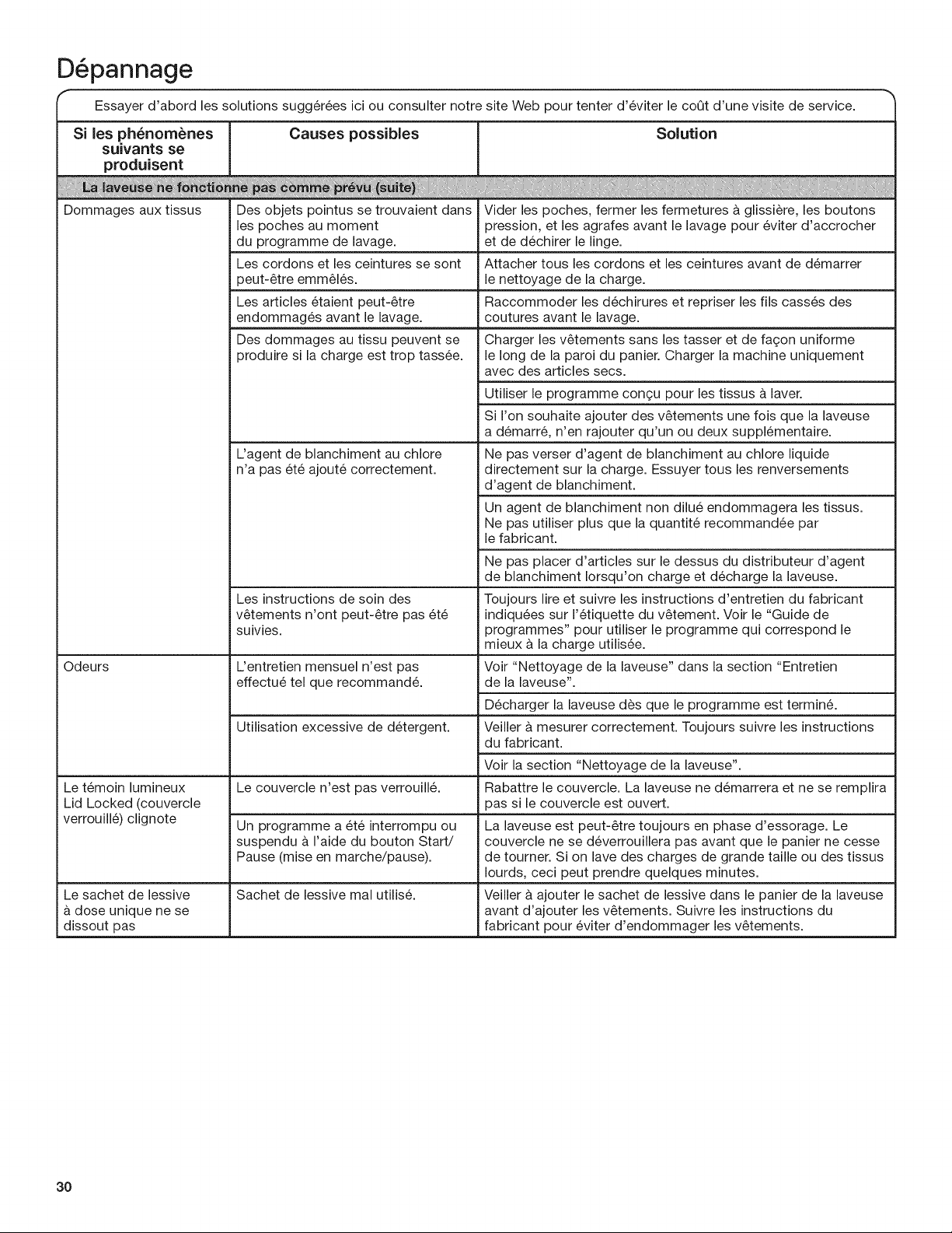Avant de faire un appel pour assistance ou service, veuillez v6rifier la section "D6pannage".
