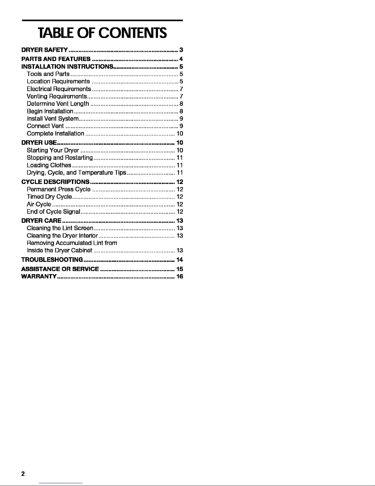 cause lint-attracting static electricity. See "Drying, Cycle, and