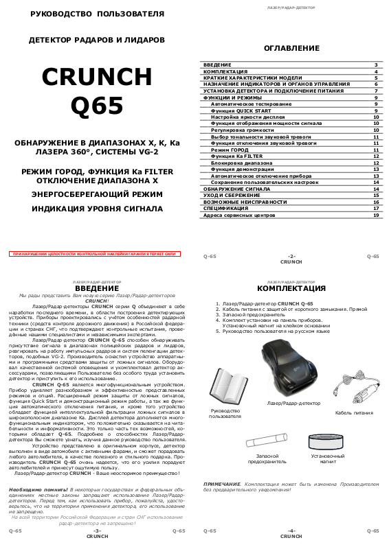 Лазер/Радар-детектор CRUNCH Q-65 способен об наруживать