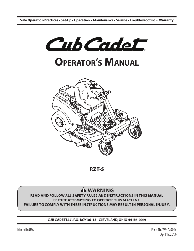 Cub cadet RZT-S46, RZT-S54, RZT-S42 User Manual