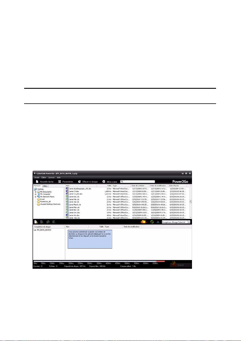 Ce chapitre présente le programme CyberLink Power2Go et comprend un aperçu