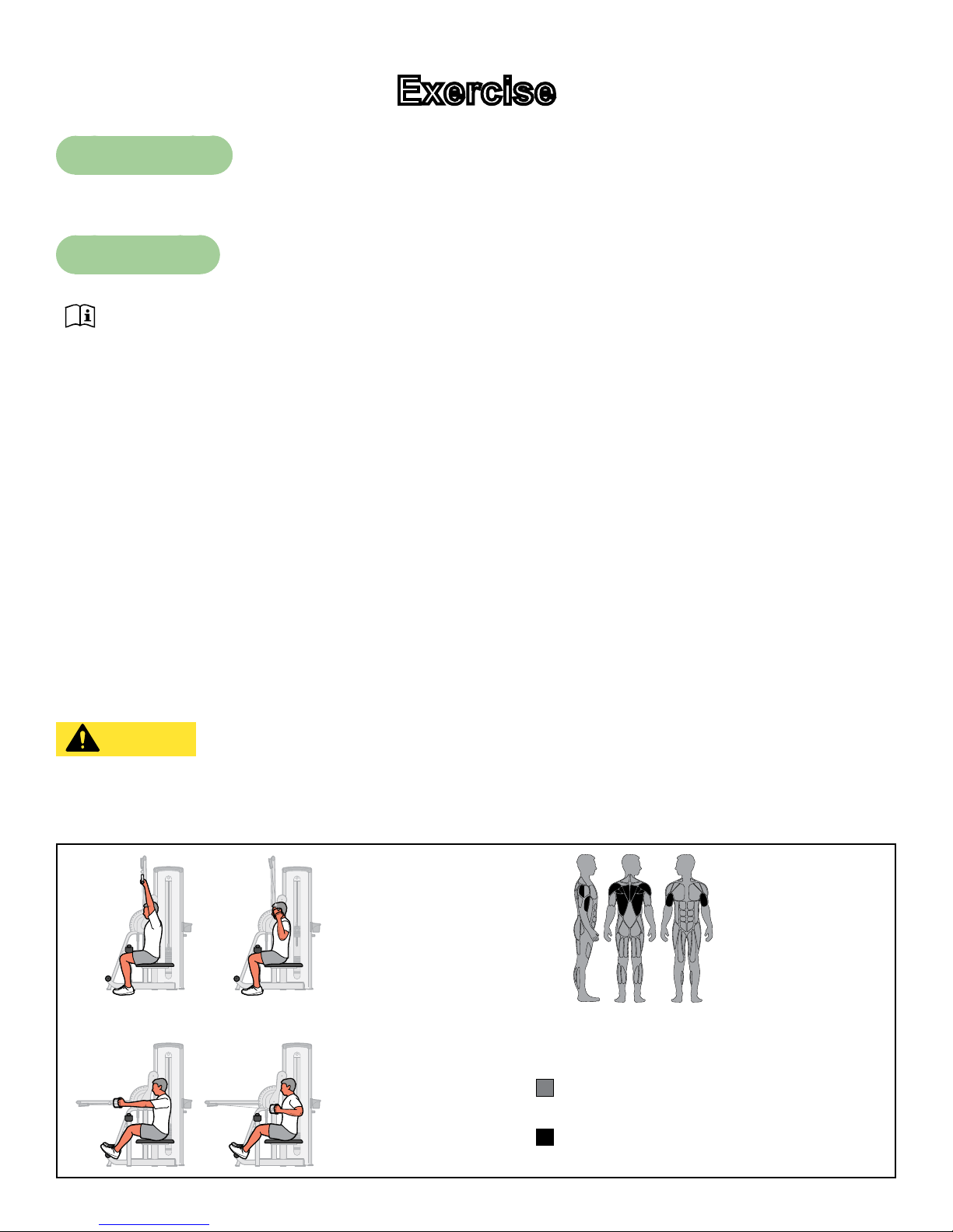 • Read and understand warning labels and instructional placards prior to exercising. Obtain