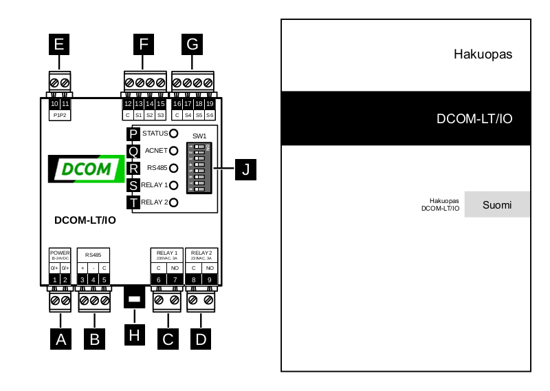 EN 60715 DIN -kiskoon. Jos releliittimet R1 tai R2