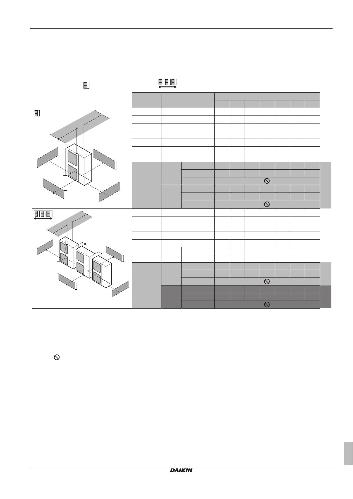 a,b,c,d,e Minimalna przestrzeń serwisowa pomiędzy jednostką i przeszkodami A, B, C, D i E