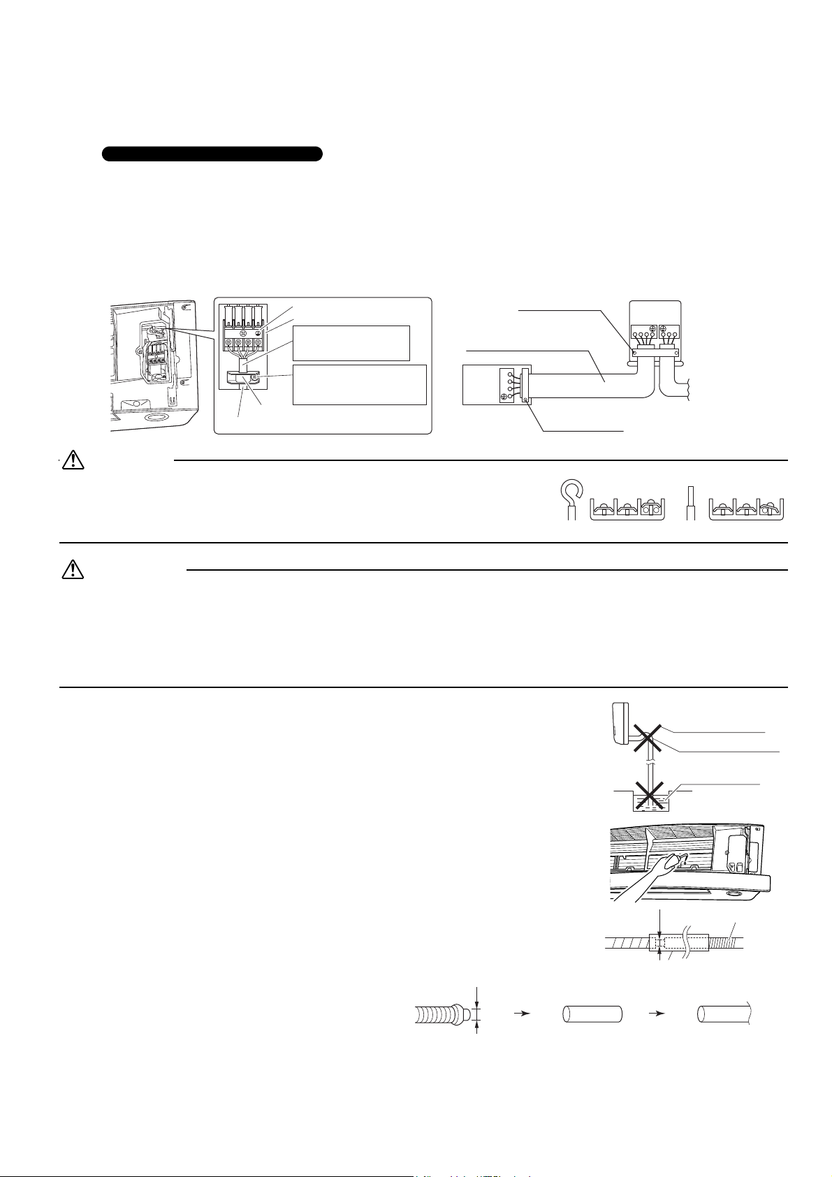 2) Sovita johtojen värit sisäyksikön ja ulkoyksikön riviliittimien liitinnumeroihin ja kiinnitä ruuvit hyvin vastaaviin liittimiin.