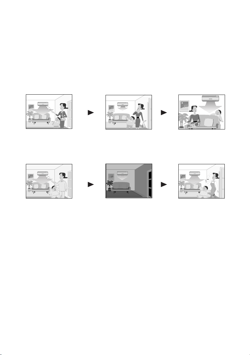 • Nie należy umieszczać urządzeń wytwarzających otwarty płomień w strumieniu powietrza z klimatyzatora, ani pod