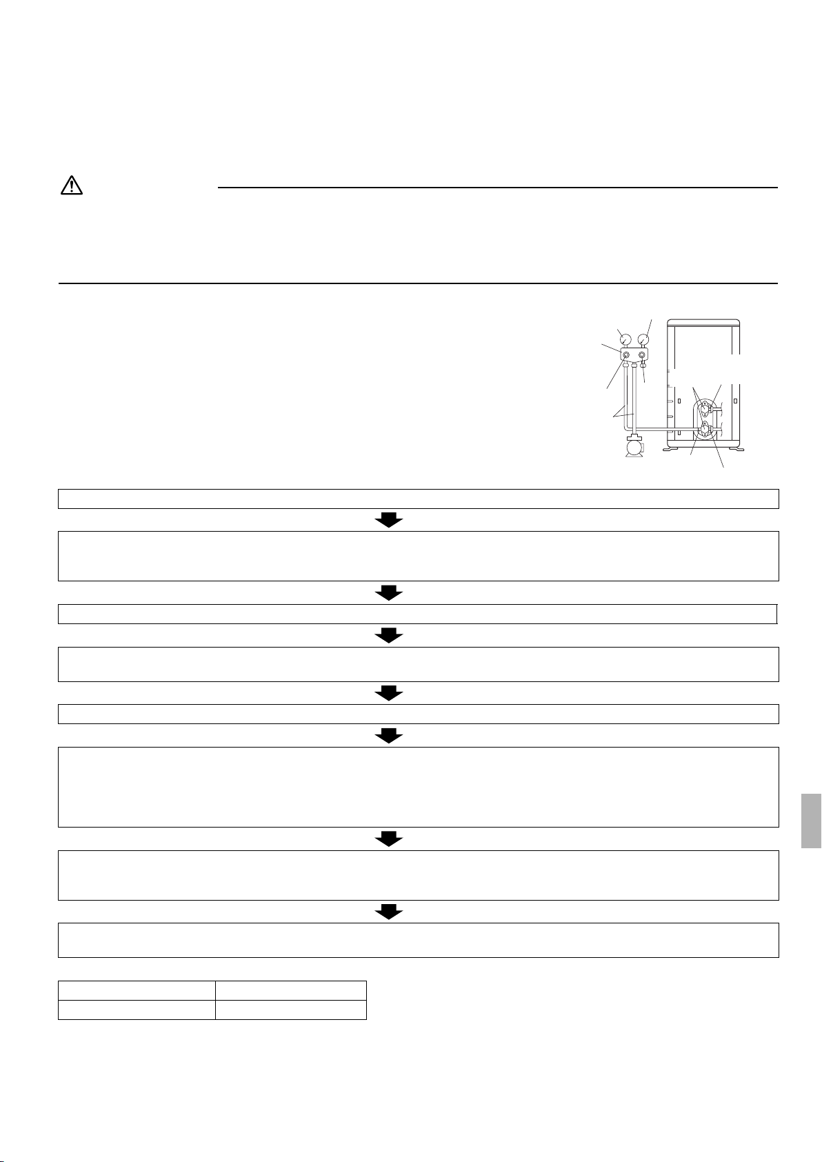 Если во время откачки компрессор продолжает работать, а запорный вентиль открыт, при отсоединении трубопровода хладагента воздух