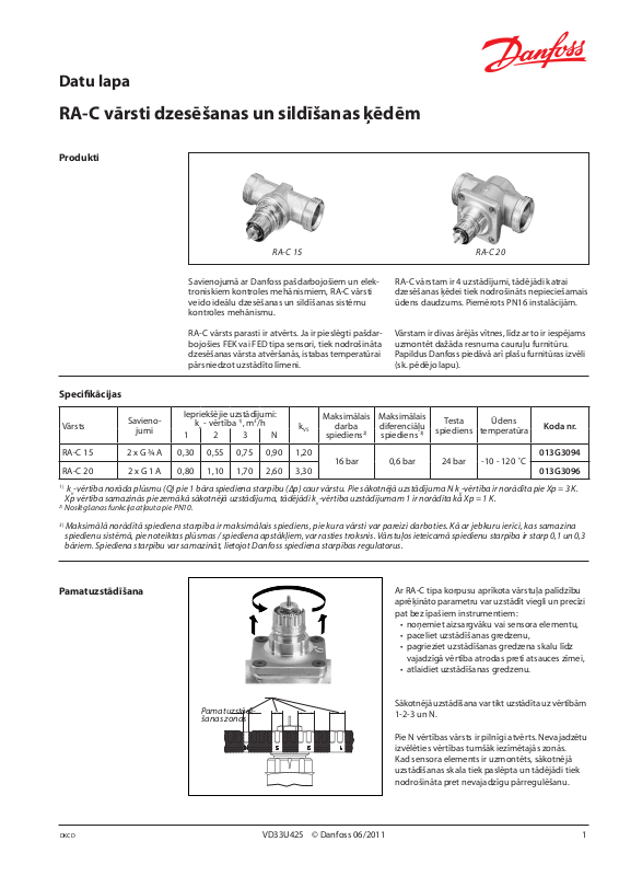 Datu lapa RA-C vārsti dzesēšanas un sildīšanas ķēdēm