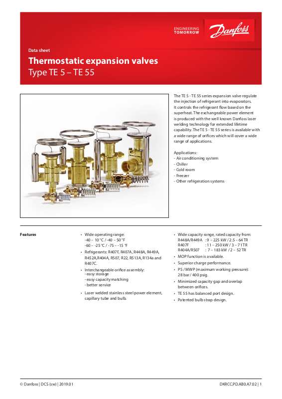 Data sheet | T hermostatic expansion valves, type TE 5 – TE 55