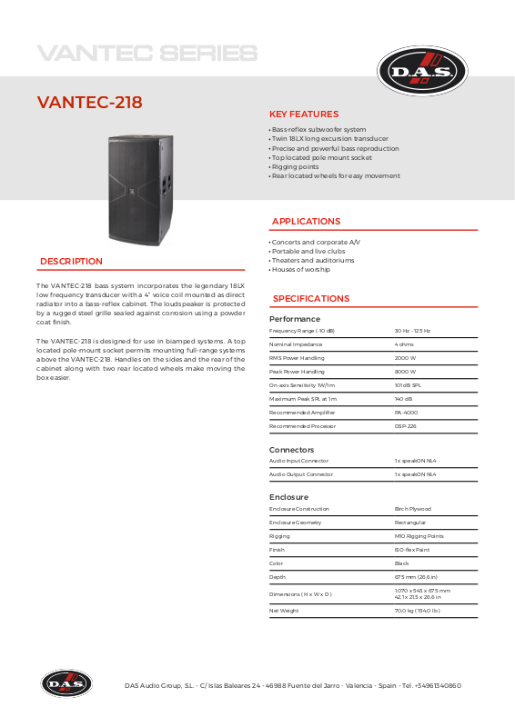 DAS Audio Group, S.L. - C/ Islas Baleares 24 - 46988 Fuente del Jarro - Valencia - Spain - Tel. +34961340860
