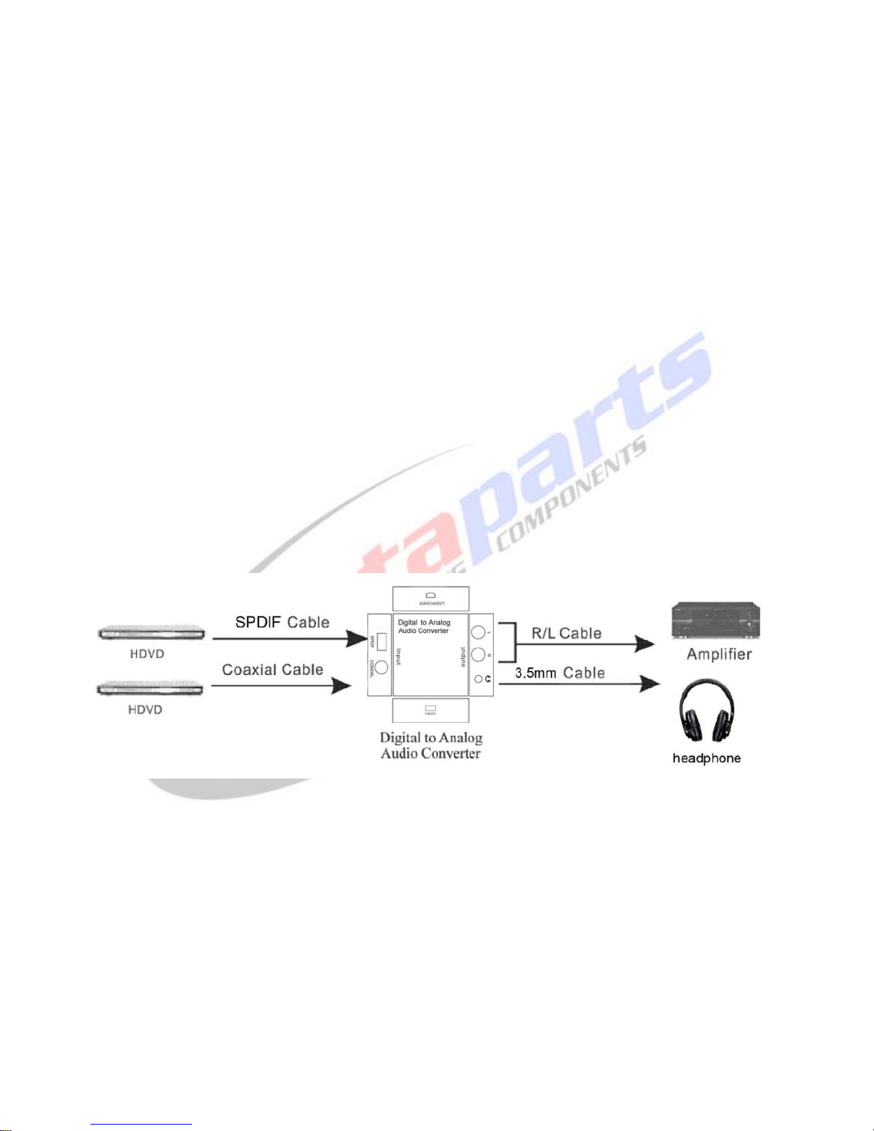 Converts SPDIF Optical (TOSLINK) or Coaxial digital PCM audio input